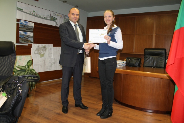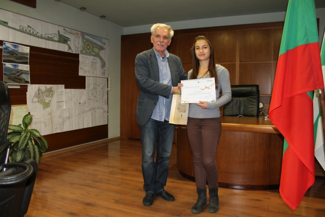 Двамата заместник-кмета по устройство на територията, инфраструктура и екология арх. Николай Меразчиев и Христина Христова – ученичка от ПМГ „акад. Ив. Гюзелев“.