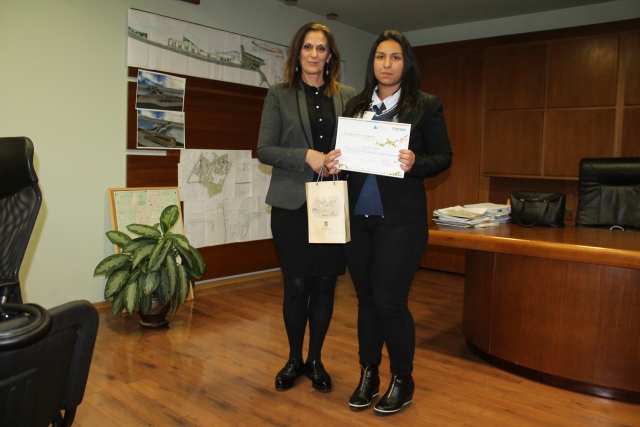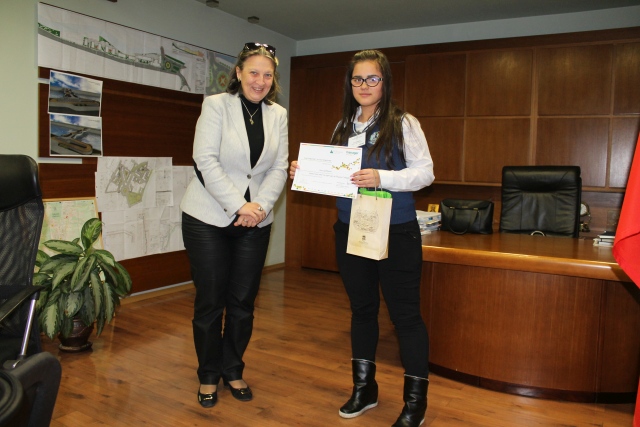 Председателят на Общински съвет – Габрово Лена Георгиева и възпитаничката на ПГИ „Рачо Стоянов“ – Виктория Петкова.