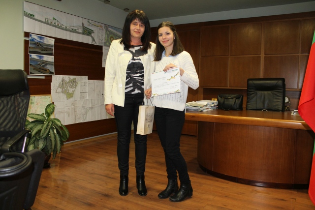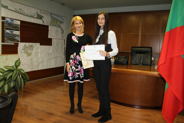 Директорите на дирекция „Образование и социални дейности“ - Даниела Василева и Олеся Янева – ученичка от ПМГ „акад. Ив. Гюзелев“.
