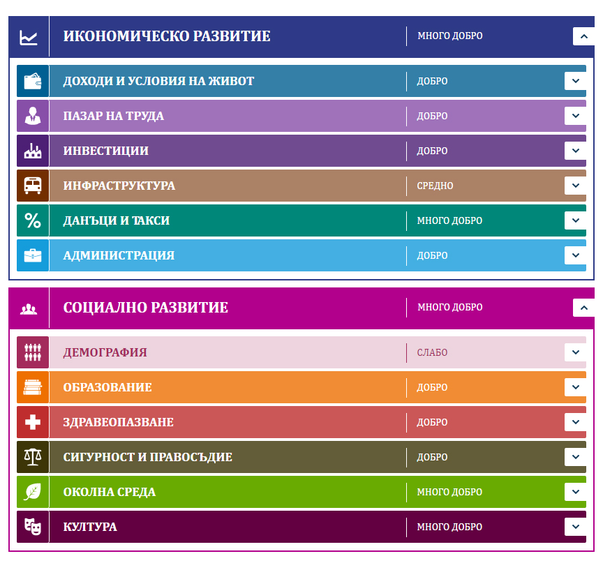 По икономическо и по социално развитие Габрово се позиционира на второ място в страната след столицата. Това сочат последните данни на Института за пазарна икономика. В проучването Габрово е на пето място по най-висок БВП на човек от населението, доходите на населението изпреварват средните стойности за страната, а заплатите се повишават устойчиво. За пета поредна година общините в областта усвояват най-много европейски средства на човек от населението. Габрово е сред областите със сравнително добро развитие на електронното правителство и предоставянето на административни услуги на „едно гише”, а общинските администрации в областта получават относително високи оценки за прозрачност.