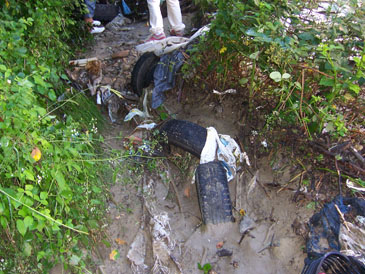 От дерето в района на улица „Неофит Рилски” са извадени повече от 100 автомобилни гуми, 4 големи възглавници, както и хиляди пластмасови бутилки.