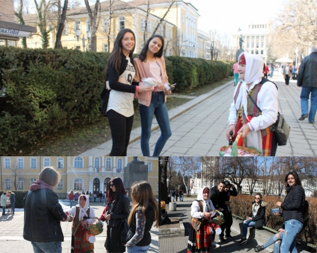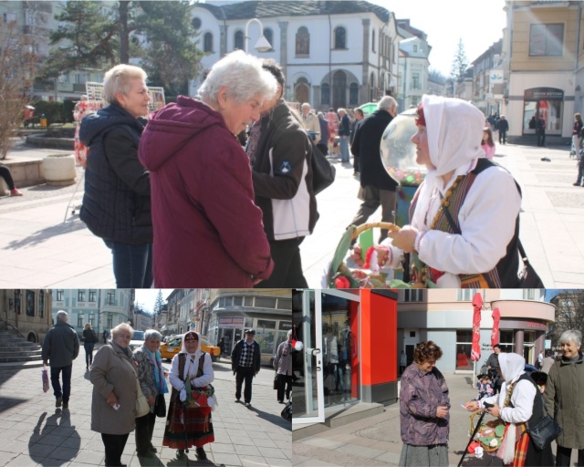 Баба Марта дари жителите на Габрово с мартенички, както повелява традицията днес и им пожела да са здрави и засмени. Заедно с помощници-добровлци от Дневния център за стари хора в града, тя посрещна млади и големи и още по-големи около Националната Априловска гимназия и по централната търговска улица „Радецка“.