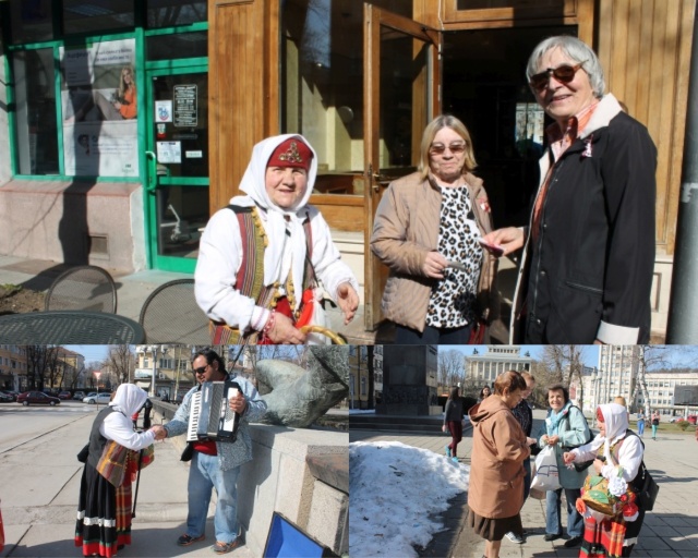 Баба Марта не подмина уличния музикант и го накичи с мартеничка за късмет и берекет.