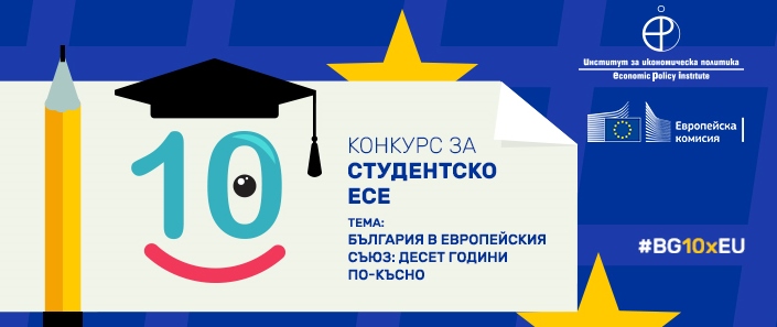 Представителството на Европейската комисия в България в сътрудничество с Институт за икономическа политика организира конкурс за студентско есе на тема „България в Европейския съюз: десет години по-късно“.