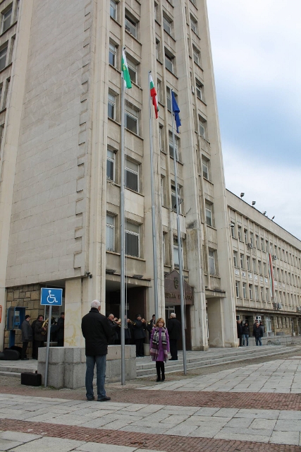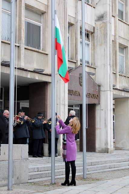 Пред сградата на общинската администрация и в присъствието на официални гости, кметът Таня Христова издигна националното знаме.