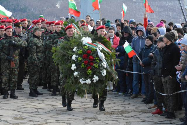 В присъствието на премиера Герджиков, кметовете Таня Христова и Галина Стоянова, представители на дипломатическия корпус, военни, официални гости и граждани, 61-ва Стрямска механизирана бригада от Карлово поднесе венци на признателност.