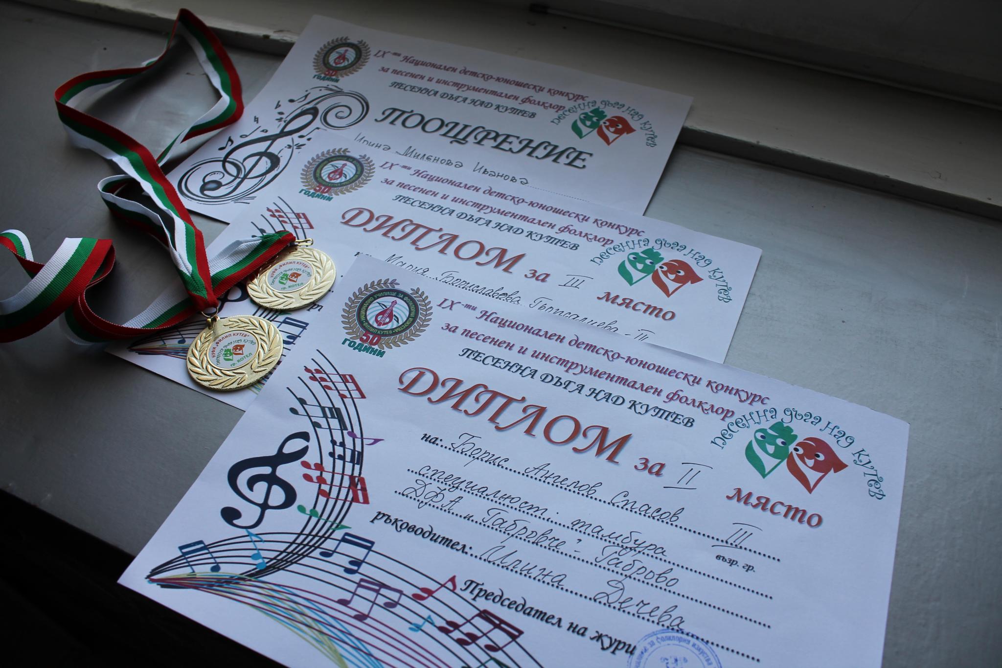 Седем награди грабнаха инструменталистите на Детски фолклорен ансамбъл „Габровче“ на IX Национален детско-юношески конкурс за песен и инструментален фолклор "Песенна дъга над Кутев" в Котел.