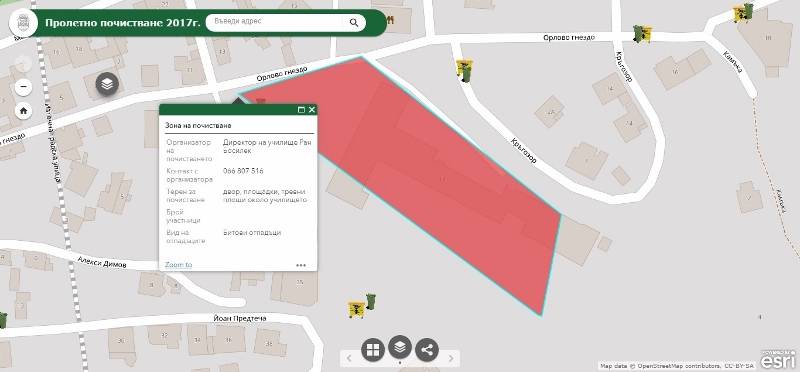 Добавен е инструмент за лесно споделяне в социалните мрежи или по електронна поща на местоположението на зоната, която ще се почиства.