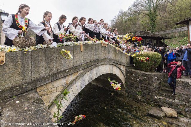 Девойките представиха характерните за Лазаровден песни и танци, обиколиха къщите по Чаршията в музея на открито и хвърлиха венците си от моста в река Сивек.