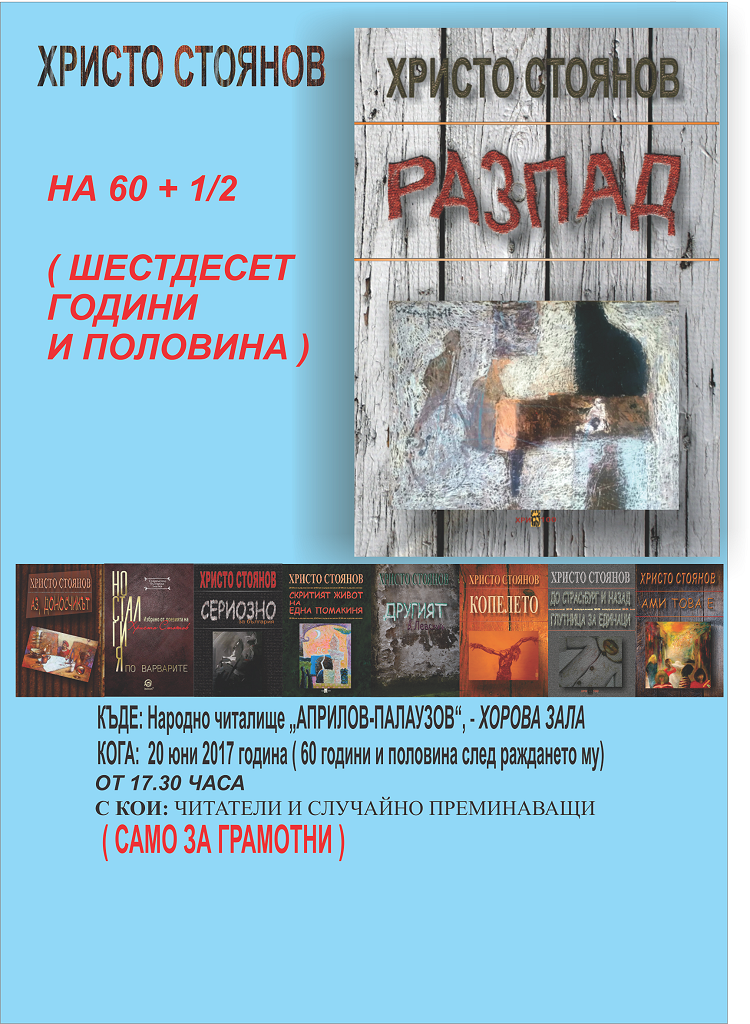 Най-новата книга на Христо Стоянов "Разпад“ ще бъде представена в Габрово. Събитието ще се състои на 20 юни от 17.30 часа в Хоровата зала на НЧ "Априлов - Палаузов".