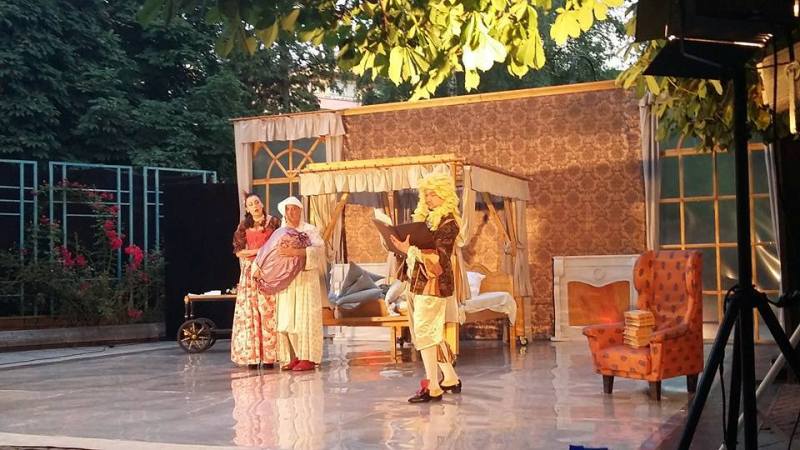 Комедия на маските, перуките, танците, пищните костюми – това е Молиеровият театър, а съчетано с романтиката на звездното небе, преживяването ще е вдъхновяващо и неповторимо. В ролите: Николай Урумов, Надежда Петкова, Миглена Стоева, Адриана Димова, Магдалена Славчева, Илия Костадинов, Светослав Славчев, Валери Радев, Даниел Тотов, Петко Петков, Димо Димов; сценография и костюми - Кирил Наумов; музикални картини - Иван Стоянов; художествено осветление - Лальо Христов.