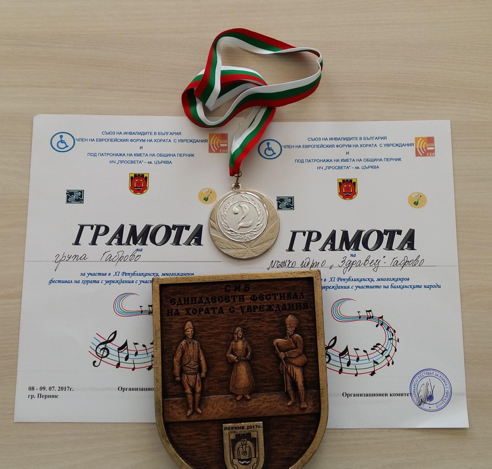 От 8 до 9 юли 2017г. в гр. Перник се проведе XI Републиканския многожанров фестивал на хората с увреждания. Габрово бе достойно представено от вокална група „Надежда „ към Дружество на инвалидите – Габрово, с ръководител госпожа Стефка Карапенева.