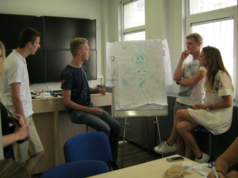 Младежката безработица в ЕС беше тема на следващия открит разговор с участниците. Всеки от тях сподели какво иска да учи и защо прави този избор, воден от желание към предпочетената дисциплина или от възможностите, които ще му се предоставят на пазара на труда. Обсъдиха различните източници, където се публикуват обяви за работа, какви са практиките и похватите при търсене на работа в двете страни. Представена беше работата на доброволеца като първи трудов опит, придобит от младите хора и стъпка към успешната им реализация на трудовия пазар. Българските участници, които са добровлци към различни младежки организации в града, разказаха за работата си и с какво тя им помага.