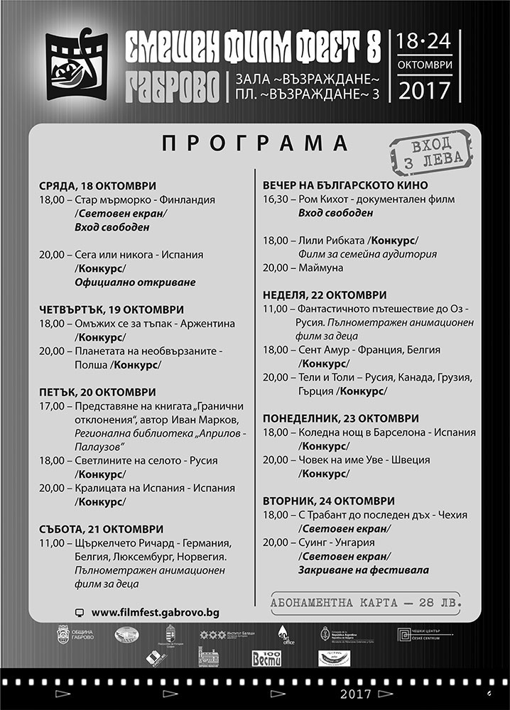 От 18 до 24 октомври 2017 г. Столицата на хумора за осми път ще бъде завладяна от треска за кино!