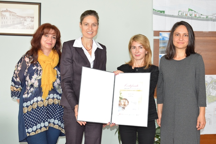 От ляво надясно: Председателят на ОбСНВ Габриела Йосифова, съветник Улрике Щрака, кметът Таня Христова, гл. експерт „Проекти" Севдалина Ненкова