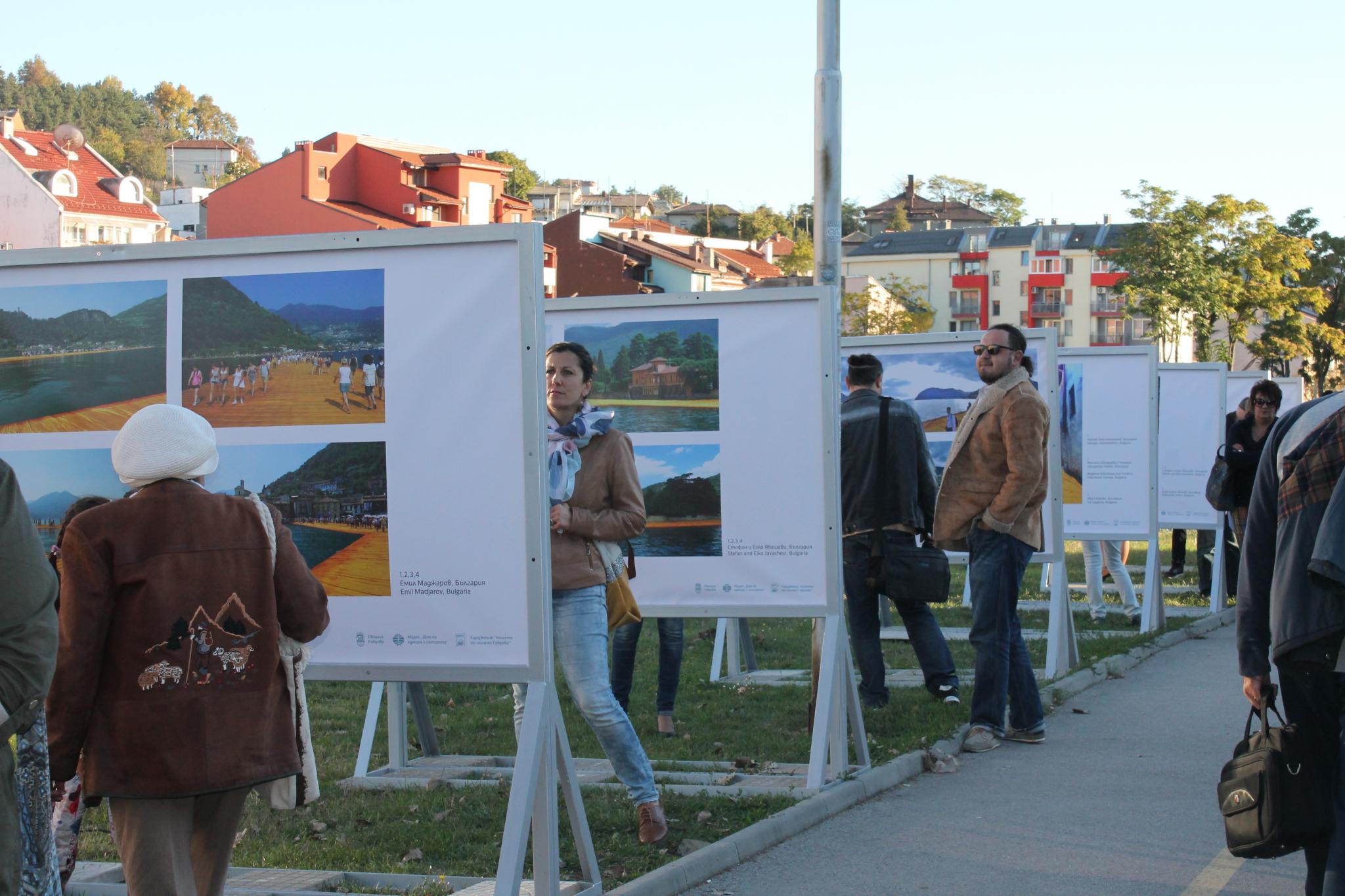 Фотографската изложба, запечатала любителски и професионални кадри от последния проект на Христо Явашев "Плаващите кейове" в езерото Изео, Италия, вече е разположена на крайречната алея на улица "Аврам Гачев".