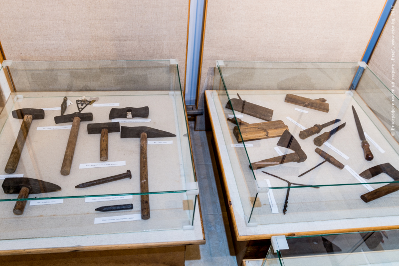 „Първата от трите групи е каменоделството. Предметите там отговарят за началото на строителната дейност, поставянето на основите на един строителен обект. Втората група предмети се отнася към работата с дърво, известна като дограмаджийство - изработването на врати, прозорци, вътрешната мебелировка. В третата група сме обединили предмети, свързани с изграждането на мазилката на строителния обект”, разясни Георги Георгиев.
