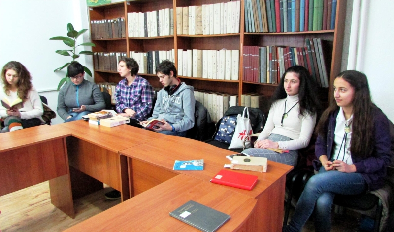 В деня на 140-годишнина от рождението на поета, публициста и революционер Пейо Яворов, доброволци към РБ „Априлов-Палаузов” представиха литературно четене на Яворовите творби. Преди това младежите изнесоха презентация за живота на твореца, подготвена от Весела Иваничкова, възпитаник на Национална Априловска гимназия. Стихотворението на Яворов „Теменуги” бе илюстрирано с картина на Деси Савчева, също ученичка от НАГ.