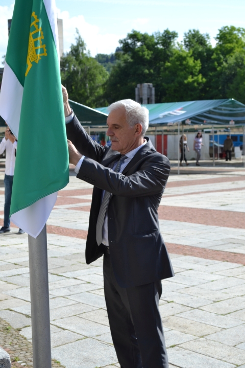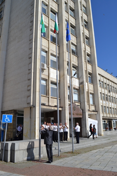 След църковната служба заместник-кметът Николай Меразчиев издигна знамето на града пред сградата на общинската администрация.
