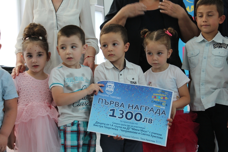 В раздел средна група /до 10 участници/, призът се присъжда на Картина № 13 „Приказна Европейска България“, Карнавалната картина, представена от най-малките участници в тазгодишния конкурс – децата от I А група на ДГ“Мики Маус“ с учители Бистра Георгиева -Чиприянова и Светла Христова.