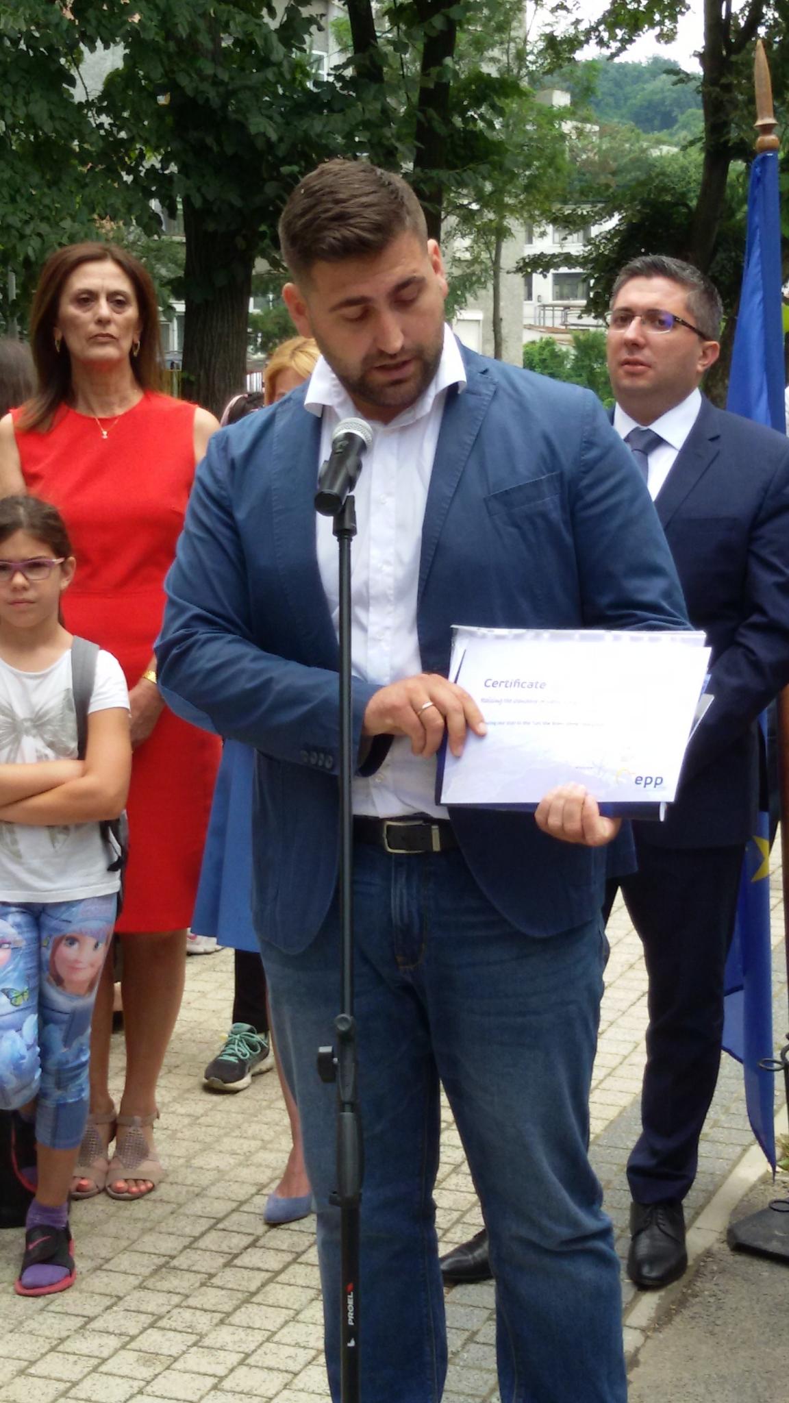 По време на церемонията евродепутатът Андрей Новаков обяви, че Габрово е отличен сред градовете най-добри бенефициенти в ЕС, в инициатива на депутати от Европейския парламент, и връчи на Община Габрово сертификата за отличието.