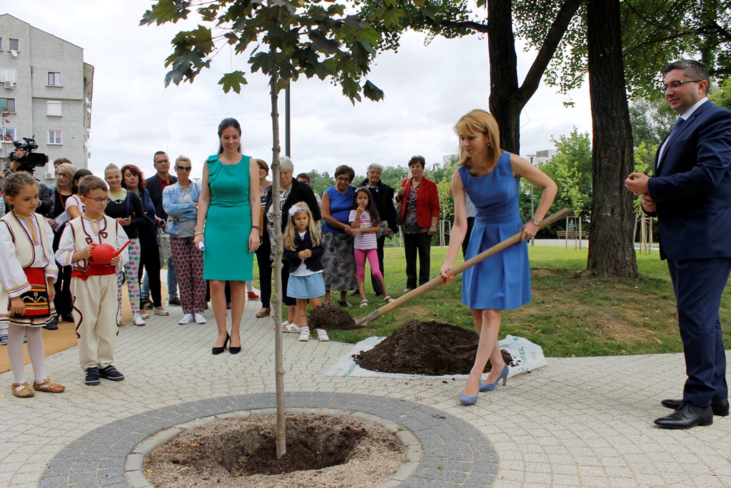 След церемонията Таня Христова и министър Николай Нанков засадиха младо дръвче явор, асистираха им Виктория и Калоян от близката детска градина „Явор“.