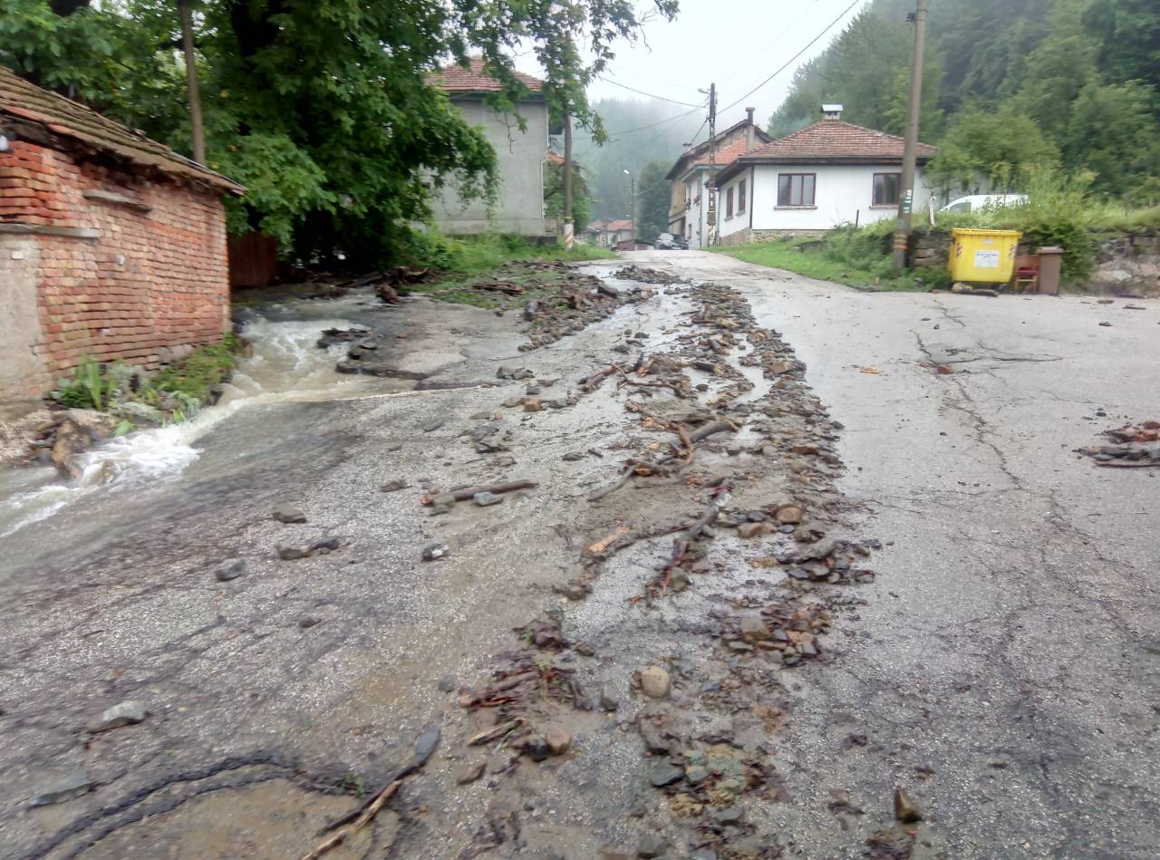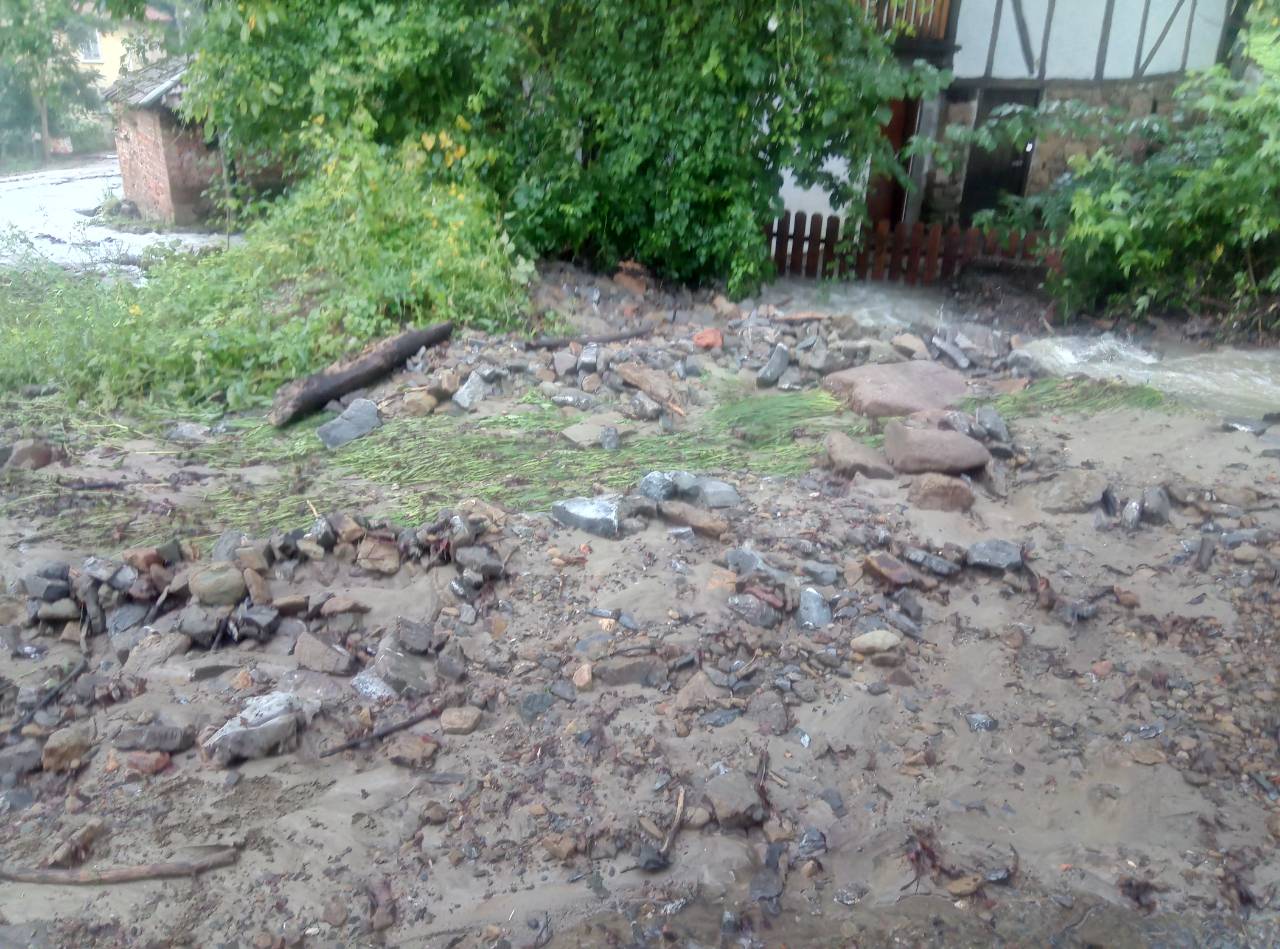 Пороен валеж наводни улици и приземни етажи на къщи в кв. Ябълка тази нощ. Заради свлечена дървесна маса преля дерето в квартала и водостока към него. Отнесена е част от асфалтовата настилка на прилежащата улица. Високите води нанесоха камъни и земни маси на пътните настилки.