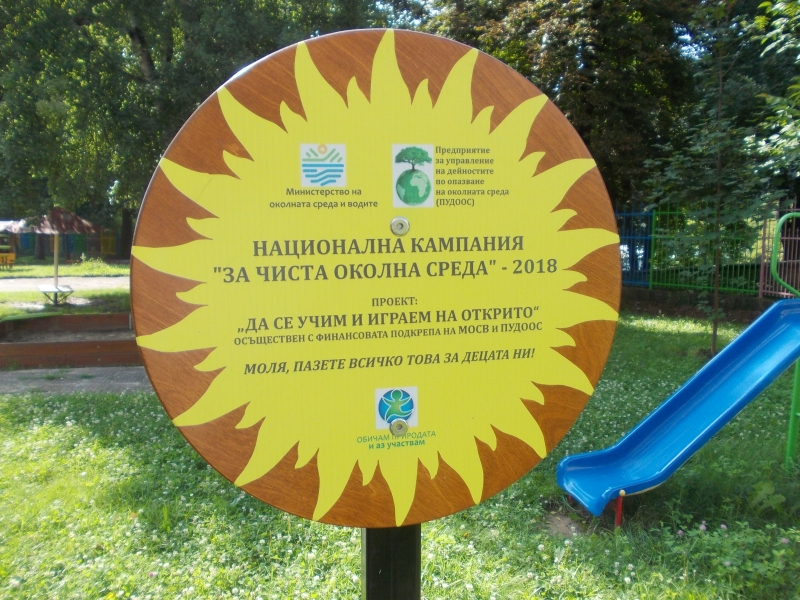 Приключи реновирането на детските площадки в ДГ „Ран Босилек“ по одобрения проект „Да се учим и играем на открито“ от Националната кампания „За чиста околна среда” – 2018, осъществен с финансовата подкрепа на МОСВ и ПУДООС.