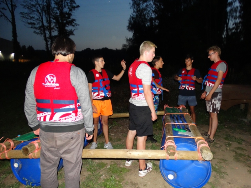 Каляването на добрия дух на отбора от български и белгийски младежи получи своята най-голяма изява по време на организирания рафтинг по река Дендер. Участниците трябваше сами да изработят плавателните си средства, а единствено сработването като отбор показа дали съоръженията могат да останат устойчиви в тъмните води.