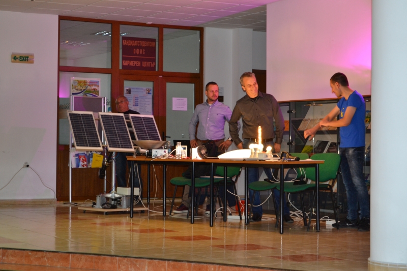 Младите учени бяха подготвили демонстрационни постановки на мобилни роботи, светодиодно фоново осветление за светлинни ефекти в мултимедийни системи, система за производство на електрическа енергия чрез водородна горивна клетка, светодиодни (LED) лампи и фотоволтаична следяща система.