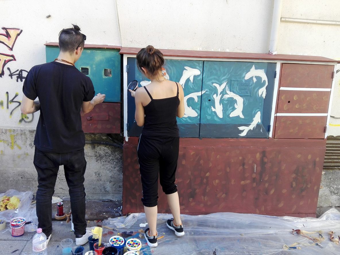 Първият им проект обхваща дейности по обновяването на електрически табла в централните части на града. Осъществяването му става с одобрението на ЕРП Север Енерго Про и с подкрепата на община Габрово, която организира посрещането и настаняването на художниците, работещи по таблата.