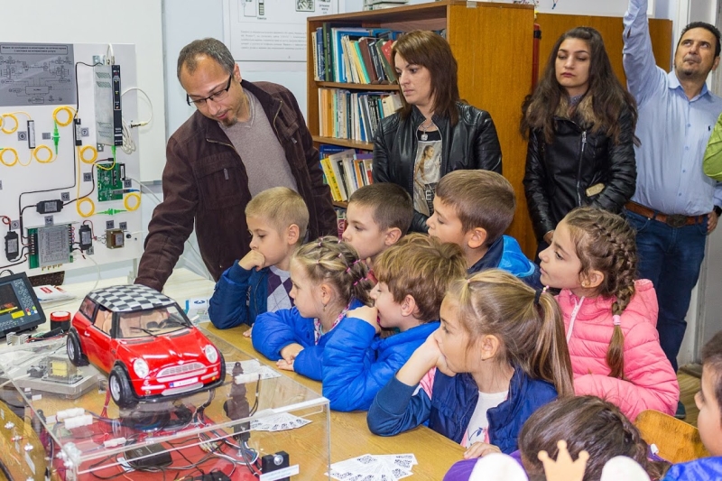 Децата научиха за какво служат някои от разработките на преподаватели и студенти чрез демонстрацията на макети на различни системи за автоматизация на индустрията. В лабораторията по „Осигурителна техника“ към катедра „Комуникационна техника и технологии“ видяха експерименти с интелигентни системи за безопасност. Под формата на забавна игра беше разяснено как работят устройствата за охрана и видео наблюдение в училище, детската градина, жилище, парк, на работното място и по улиците. Представени им бяха системи за охрана на лични превозни средства, как се активира паник-аларма и как може да се управлява видео камера през мобилен телефон.