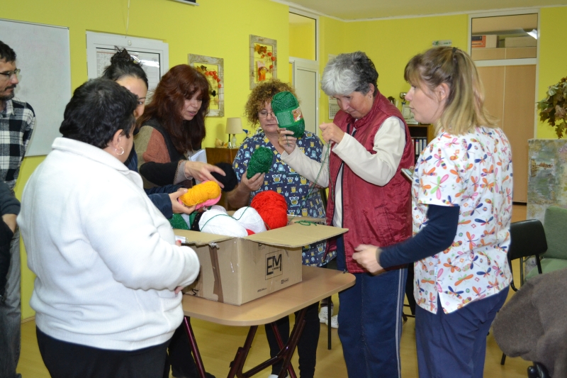 Потребителите на две социални услуги в града – Дневен център за пълнолетни лица с уреждания и Дневен център за стари хора, участват в благотворителната инициатива и ще дарят някому топлина от изплетените от тях дрехи.