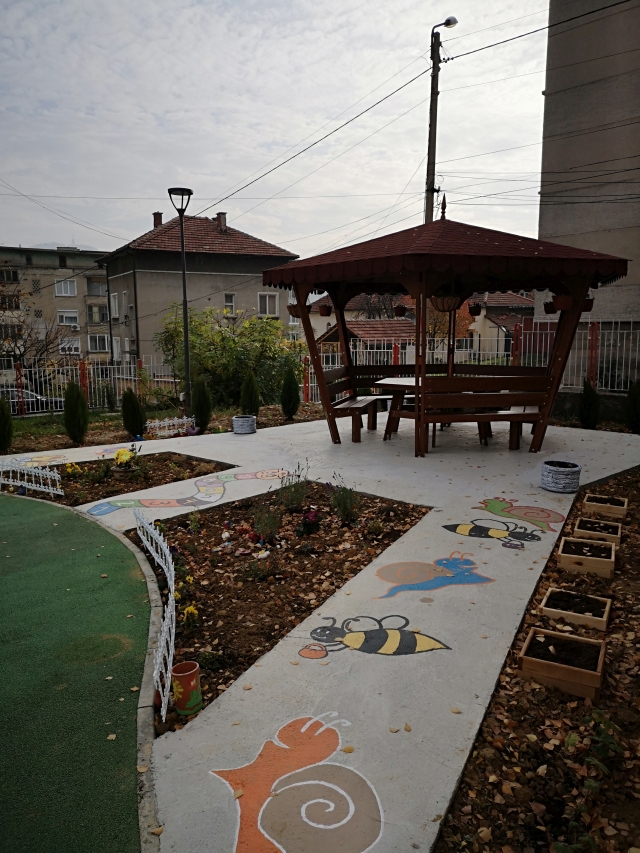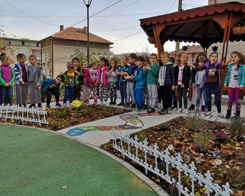 Учители, персонал, родители и деца се включиха в реализирането на образователната градинка, която се превърна в предпочитано място за обучение, игри на открито и отдих за децата. За алеите и цветните фигури ще се грижат малчуганите, които ще наблюдават растежа на растенията. От подготвителната група на 6-годишните определиха първите екопатрули, които ще следят за опазването на новото екопространство.