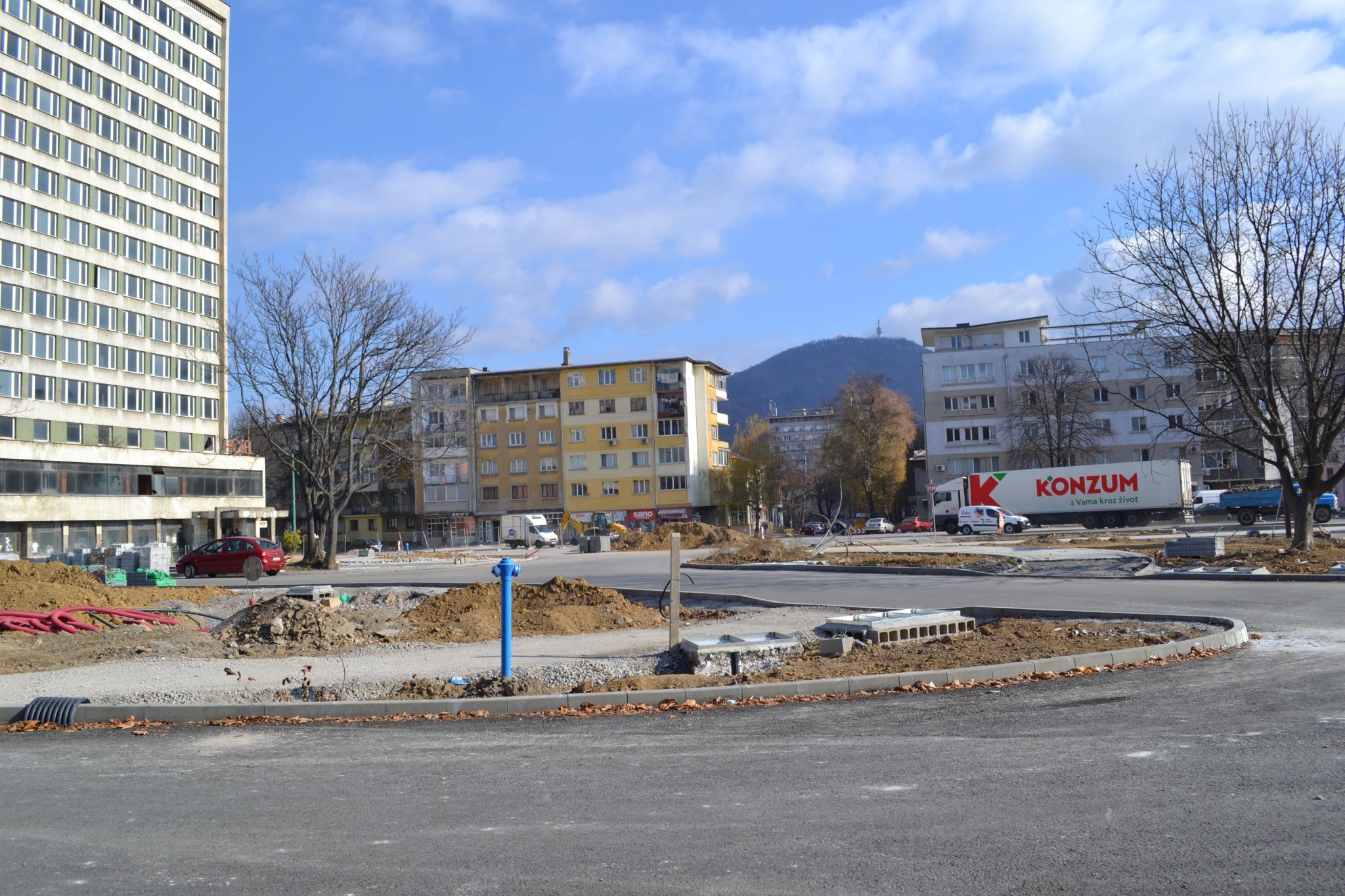Над 50 % от тротоарните настилки са готови. Извън обхвата на транспортното кръгово кръстовище, в района на самия предгаров площад са изпълнени асфалтовите настилки без последния – износващ пласт плътен асфалтобетон. Ще бъдат възстановени участъците около бордюри и пресичанията на главните пътища.