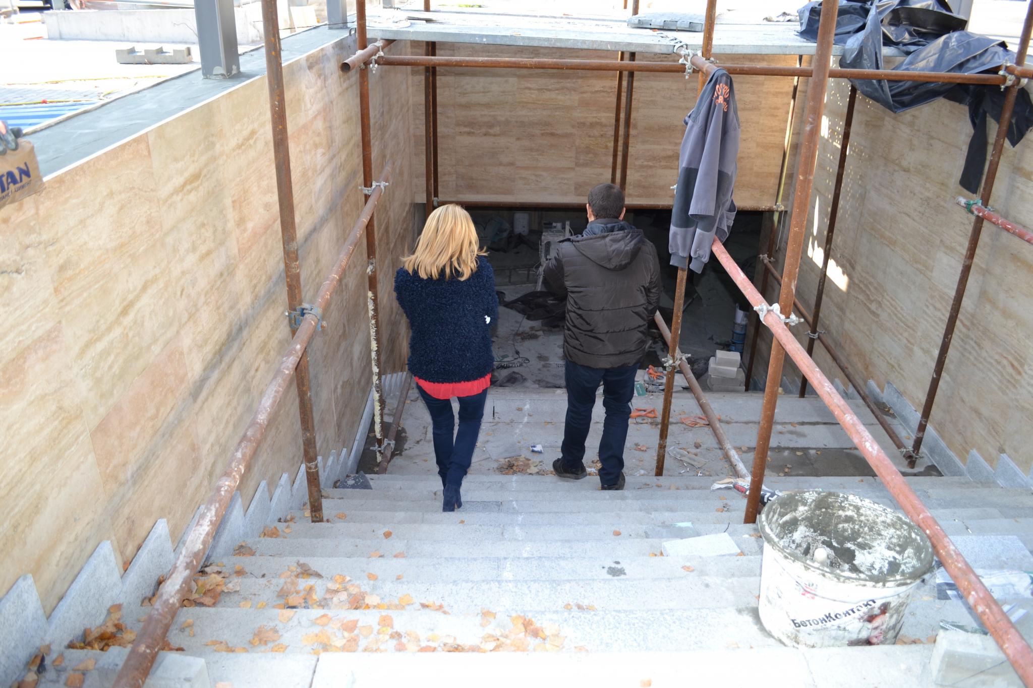 В пешеходния подлез при кръстовището на ул. „Д-р Никола Василиади“ с ул. „Брянска“ при Дом на хумора и сатирата са изпълнени гранитната настилка, облицовките на входовете, мазилките по стените и таваните. Предстои изпълнение на осветлението на съоръжението, монтаж на асансьорните платформи и оформяне на видимата им част.
