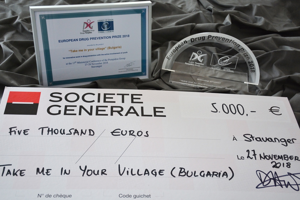 Плакетът, дипломата и чек за 5 000 евро бяха връчени на габровката Вероника Йосифова, автор на идеята и доброволец в Младежкия съвет по наркотични вещества, по време на 17-ата министерска конференция на групата „Помпиду“. Форумът се състоя на 27 и 28 ноември 2018 г. в норвежкия град Ставангер. Присъстваха членове на мрежата, представители на местни и национални власти, кметът на града-домакин и министърът на здравеопазването на Норвегия.