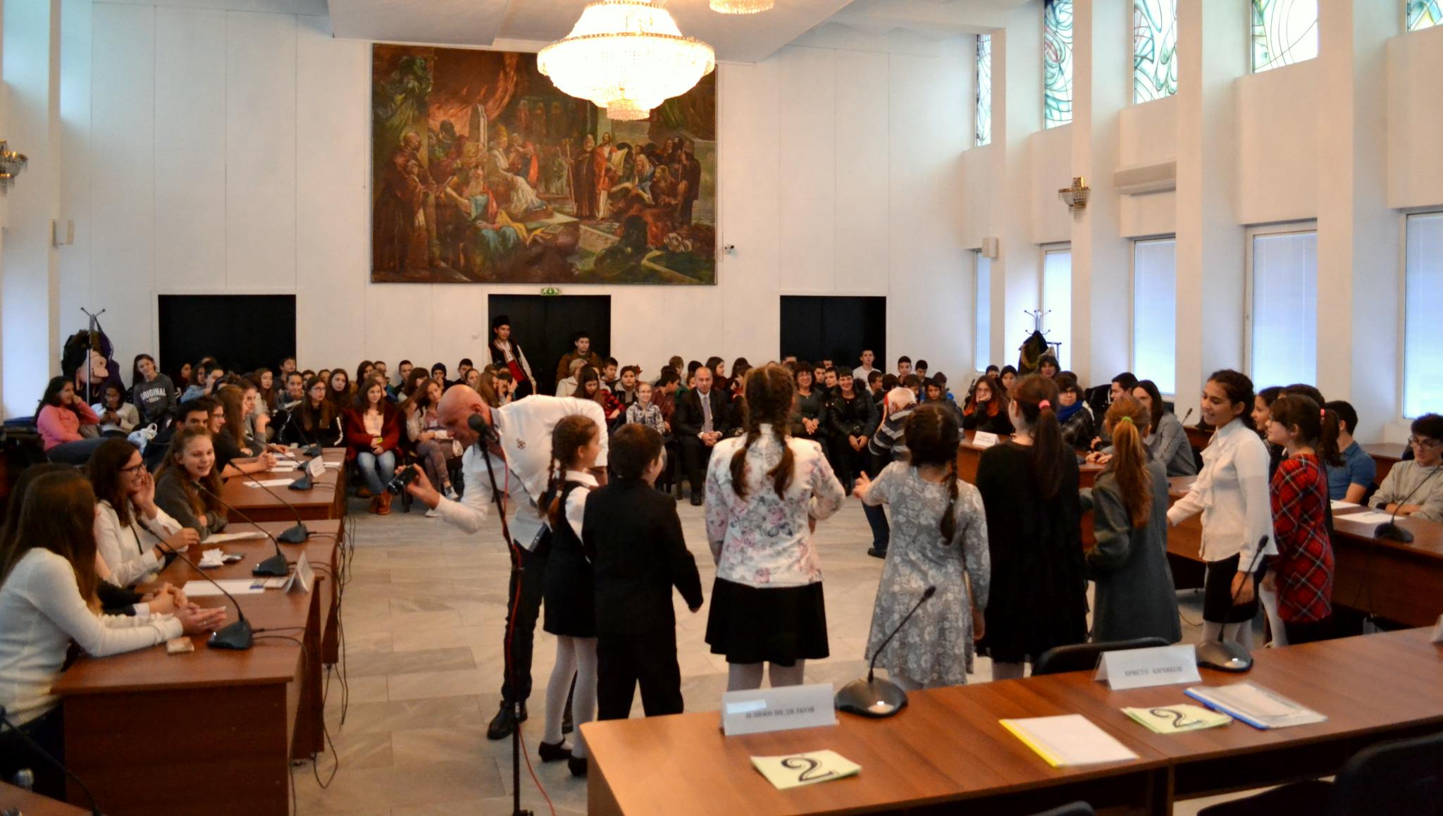 Учениците в публиката също имаха възможност да покажат знанията си и да спечелят награди.