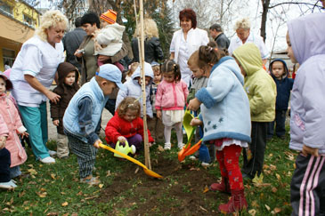 С голям ентусиазъм в засаждането се включиха и малките палавници. Брезата е символ на духовната чистота, каквито са и всички деца, a дръвчетата, освен че ще красят двора, ще останат и като спомен. Децата от „Славейче” бяха поздравени от своите възпитатели с весел куклен театър. Своето весело послание отправиха и бивши възпитаници на яслата, които вече са в детска градина „Явор”. В края на тържеството всички опитаха от тортата, без която не може да мине нито един детски празник.