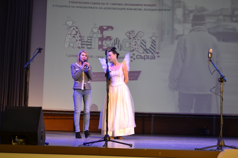 По време на концерта „Ангелски сърца“, който се състоя на 7 декември в зала „Възраждане“, бяха събрани парични средства, с които ще бъдат закупени коледни елхички и украса. Те ще бъдат дарени на самотно живеещи възрастни хора в община Габрово, за да внесат празнична атмосфера в домовете им за коледните и новогодишни празници.