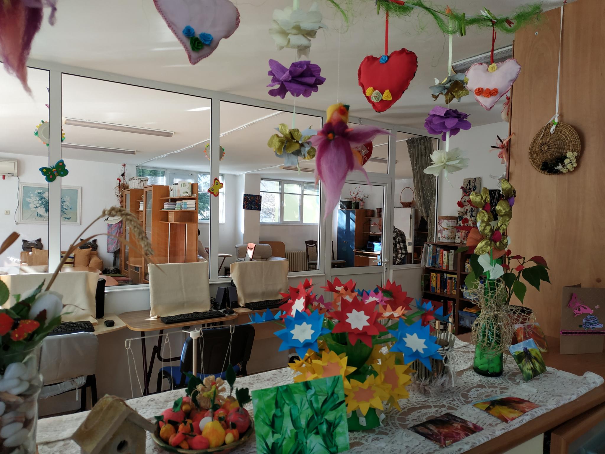 Таня Христова подари на потребителите на услугата ръчно изработени мартеници, а те като гостоприемни домакини изнесоха мини – концерт и ѝ показаха как се правят картини, с помощта на ютия и цветен восък.