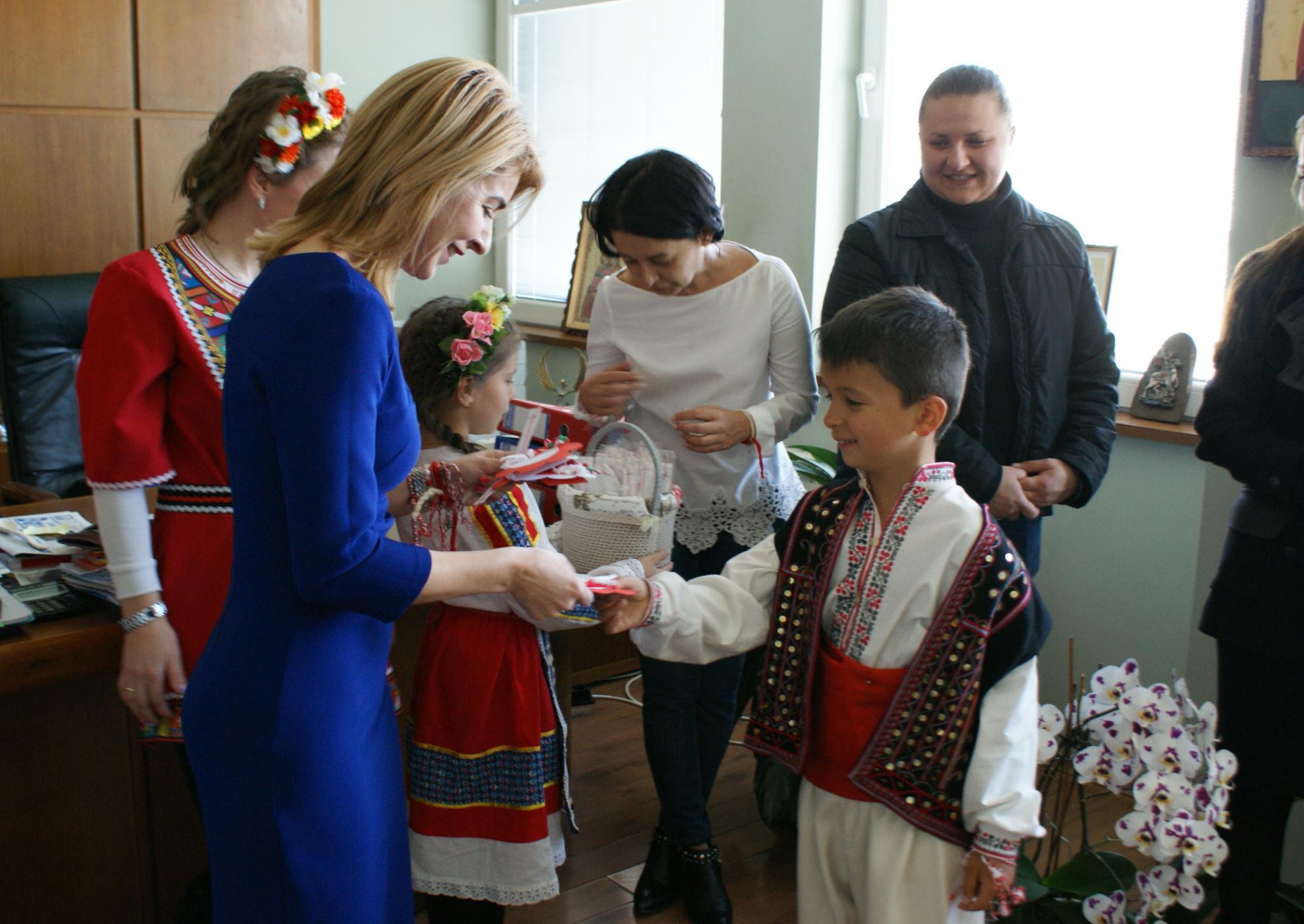 Песни, танци, много мартеници и лъчезарни усмивки озариха кабинета на кмета на Габрово на 1 март. Учители, родители и децата от 2 б клас на ОУ „Неофит Рилски“ посетиха Таня Христова. Децата разказаха какво знаят за мартениците, пяха песни и подариха на кмета мартенички, които са изработили с помощта на родителите си, показаха свои проекти и си уговориха нови приятни срещи.