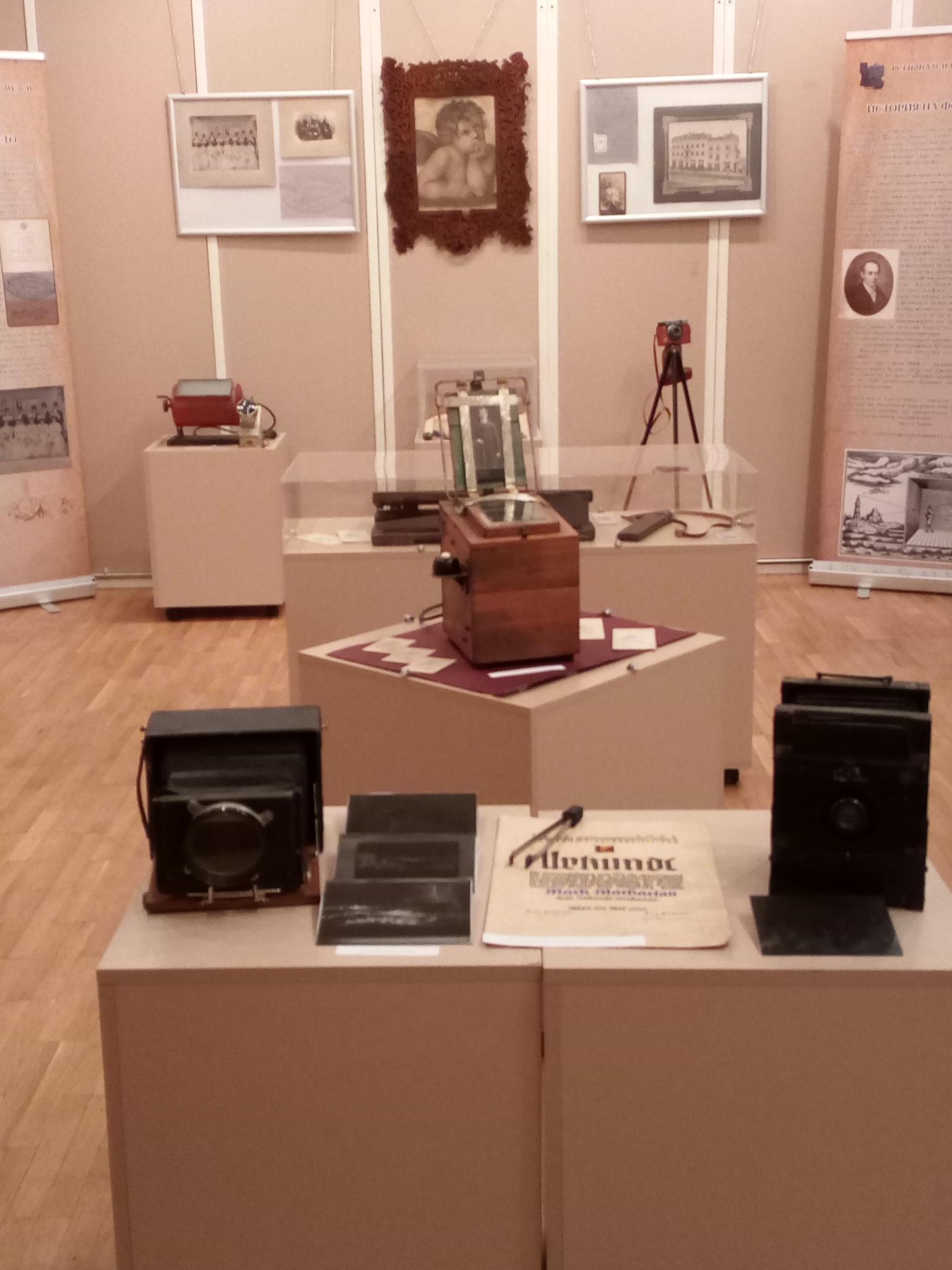 Изложбата показва копирни апарати с пламък, магнезиеви светкавици, печатна машина с воден знак на фотографската фирма, рол преси, различни фотоапарати, майсторски свидетелства и др.
