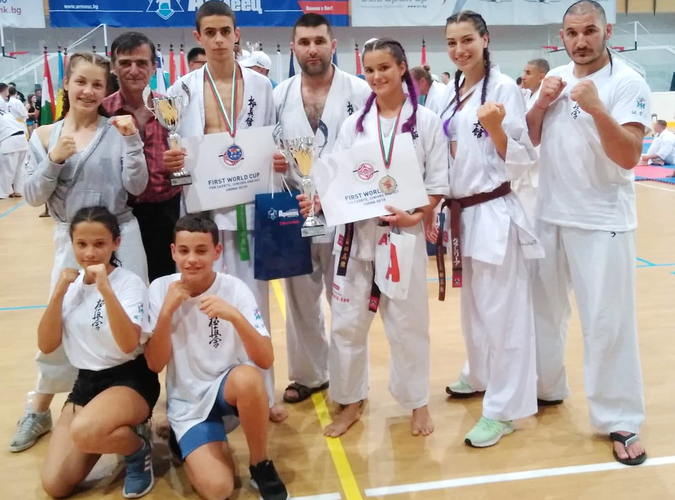 Моника Стоянова и Виктор Меразов донесоха медали на СК „Надежда“ от първата Световна купа по киокушин за юноши, девойки и кадети в три възрастови групи – 14-15 години, 16-17 години и 18-21 години. Общо седем състезатели на габровския клуб участваха в надпреварата. Тя се проведе по време на 13-я международен подготвителен лагер в СОК „Камчия“ и беше организирана от Българската карате киокушин федерация и Световния киокушин съюз (KWU).