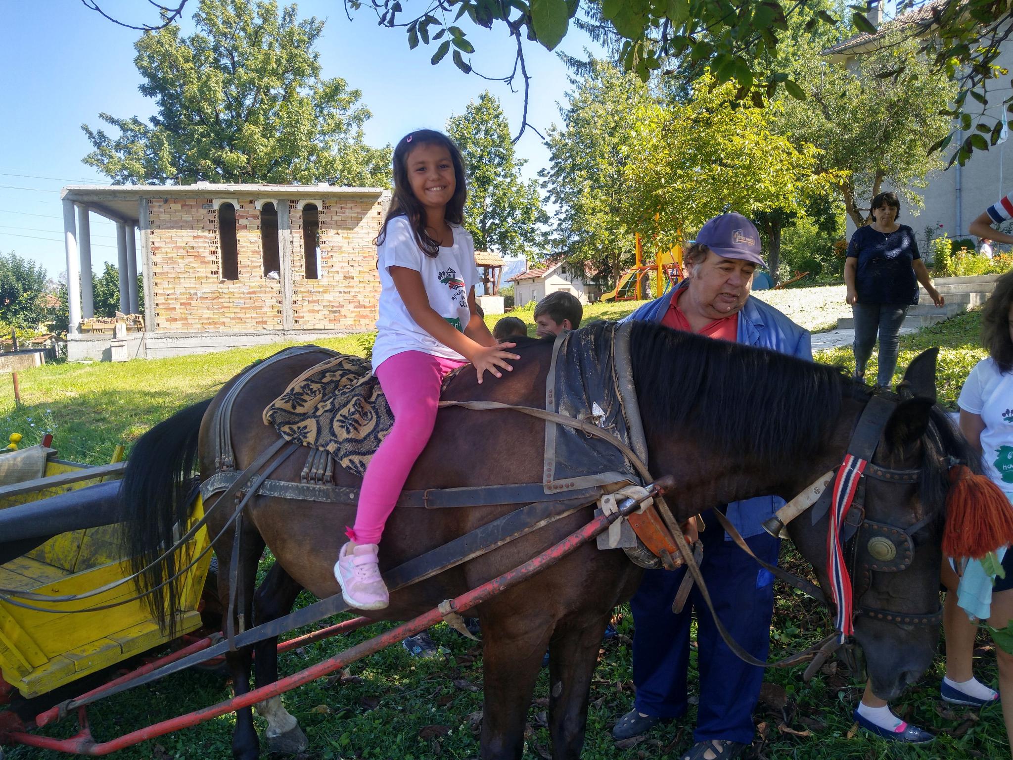Читалището в селото предложи на децата разнообразна програма – бродиране на шевици, работа с вълна /плъсти/, возене с каручка из селото, доене на козичка, среща с най-възрастния жител на селото, уроци по народни танци, възстановка на обичая Гергьовден.