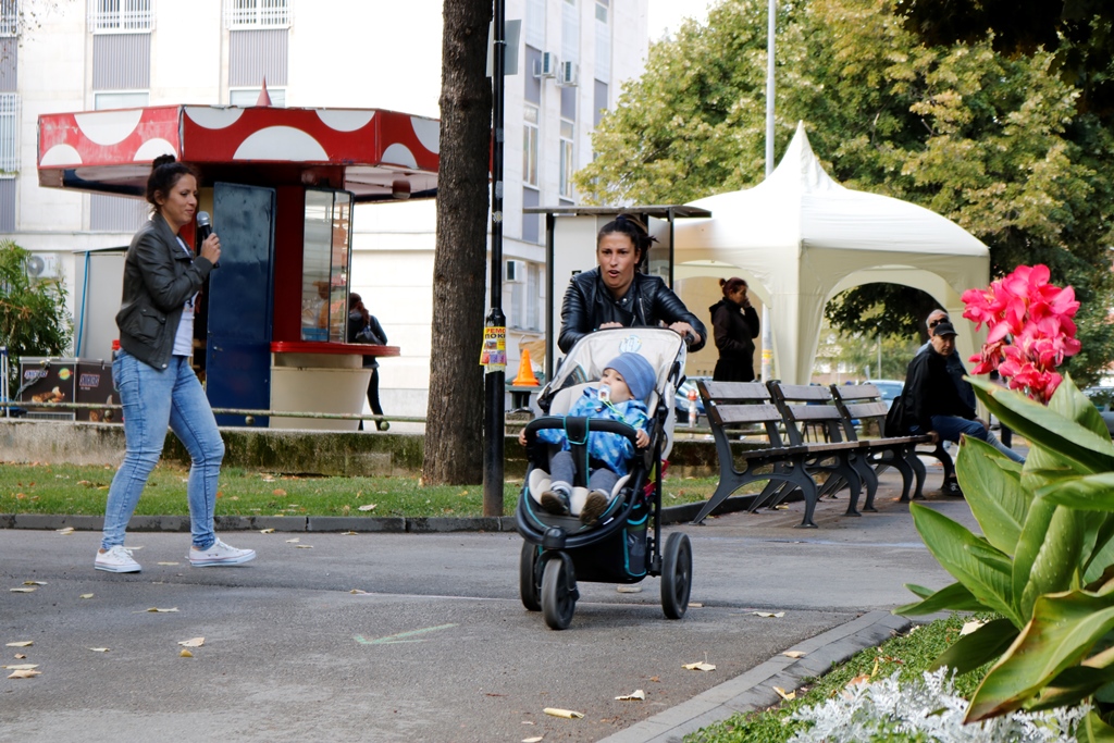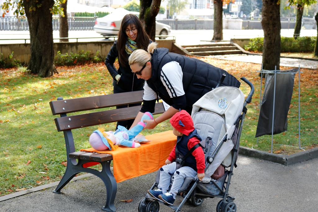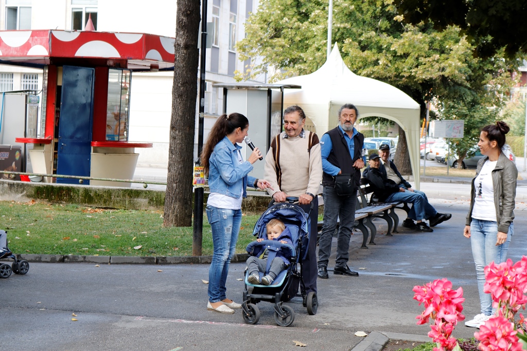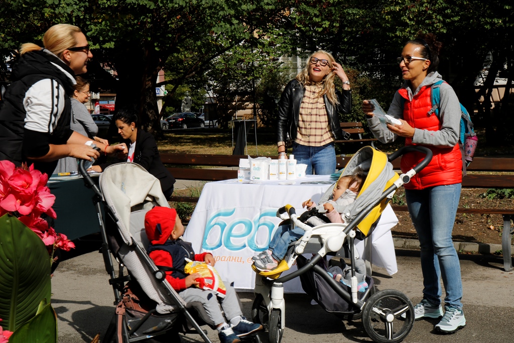 Най-нетърпелива в 9:30 ч. в Градинката с мечето пристигна майката Петя Костова с петмесечната Велизара, която се оказа най-малкият участник. В нетрадиционната надпревара освен майки, с деца и колички се включиха още двама бащи, двама дядовци и една баба.
