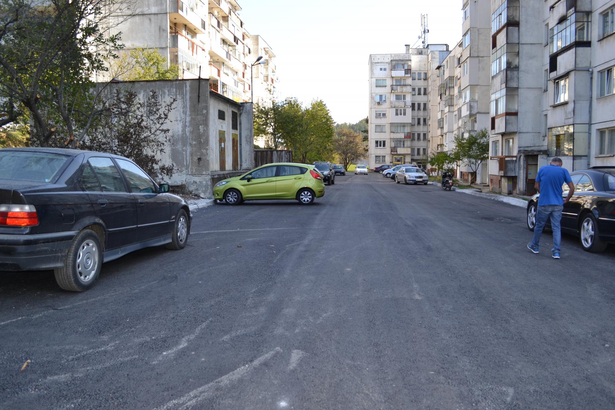 Приключи полагането на първия пласт асфалтобетон по ул. „Мирни дни“, включително по връзката й със студентското общежитие през ул. “Факел“.