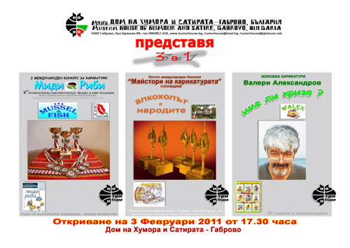 Втората изложба в зала 5 също е част от международен конкурс на тема „Миди и риби”. Негов инициатор и главен организатор е известният български карикатурист Валери Александров – WALEX. Традиционно изложбата с най-добрите карикатури от конкурса се открива в Каварна, като членовете на журито са представители на българската секция на световната организация на карикатуристите ФЕКО. Предстои ни да видим 60 произведения на автори от Аржентина, Бразилия, България, Германия, Гърция, Израел, Иран, Испания, Канада, Китай, Люксембург, Румъния, Русия, Сирия, Турция, Узбекистан, Франция, Хърватска, Черна гора, Чехия, Украйна, Унгария.