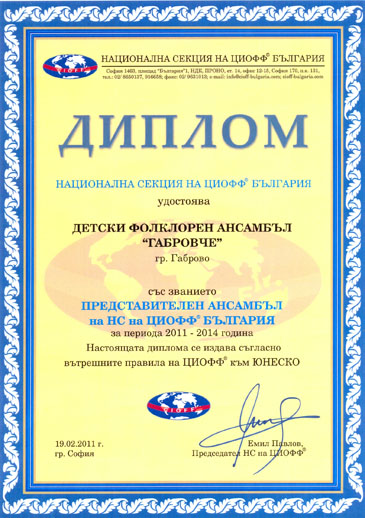 Детски фолклорен ансамбъл „Габровче” е удостоен със званието „представителен ансамбъл” на Националната секция на Международния съвет на организаторите на фестивали за фолклор и традиционни изкуства. Съставът, с художествен ръководител Лъчезар Захариев, е единственият от Габровска област с подобно отличие на Третия национален преглед на фолклорните колективи. На него се явиха близо 140 танцови и хорови състави, ансамбли, както и състави за автентичен фолклор.