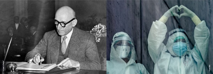 Днес ние, европейците, сме изправени пред свое предизвикателство: да осъществим тези идеали по време на пандемията от COVID-19. Работниците и служители от целия континент обединяват усилията си, за да работят основните услуги. Държавите членки предлагат помощ на своите съседи в борбата с вируса и продължават да изграждат своето общо бъдеще заедно. За да се преборим с пандемия, която не признава граници, от съществено значение е европейската солидарност. Днешните предизвикателства отразяват визията на самия Робер Шуман за Европейска здравна общност – така, както той я вижда още през 1950 г. – обединение на националните здравни стратегии и научните медицински изследвания за справяне с общите заплахи за здравето като съюз.